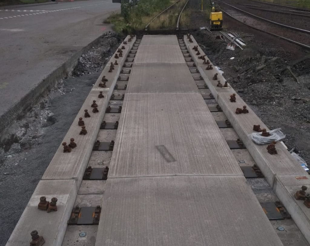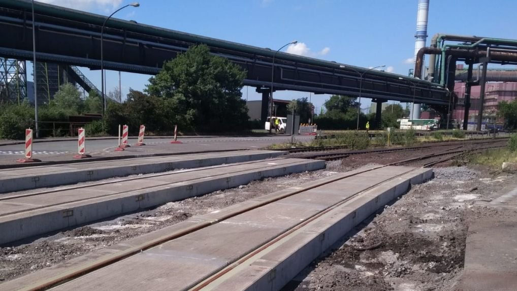 Ein Bahnübergang wurde erneuert und die Gleistragplatten Typ HKM ausgetauscht.
